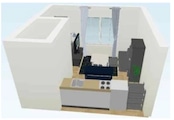 2キッチンとのレイアウトを区切るため高さがあり椅子も収納できるワンルーム重宝する。