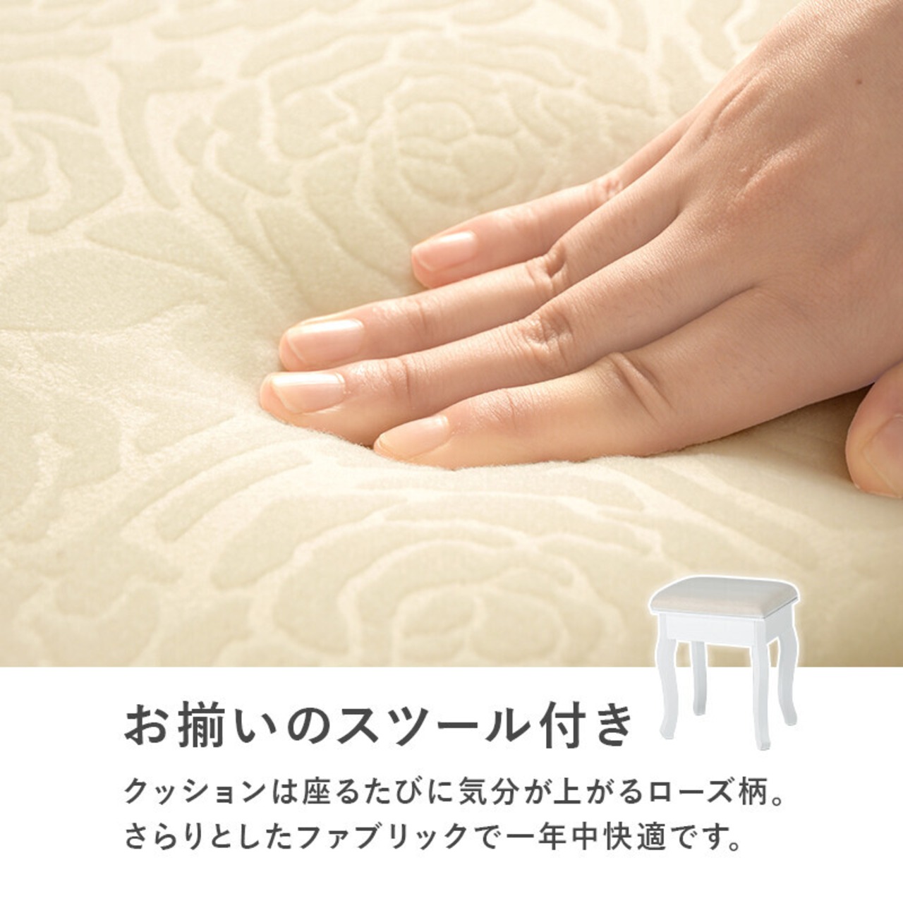 女優のように綺麗に映る三面鏡のプリンセスドレッサーデスクとスツール