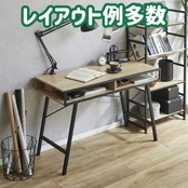 ブラックアイアンが斜めな脚と収納におしゃれにデザインされたなヴィンテージデスク