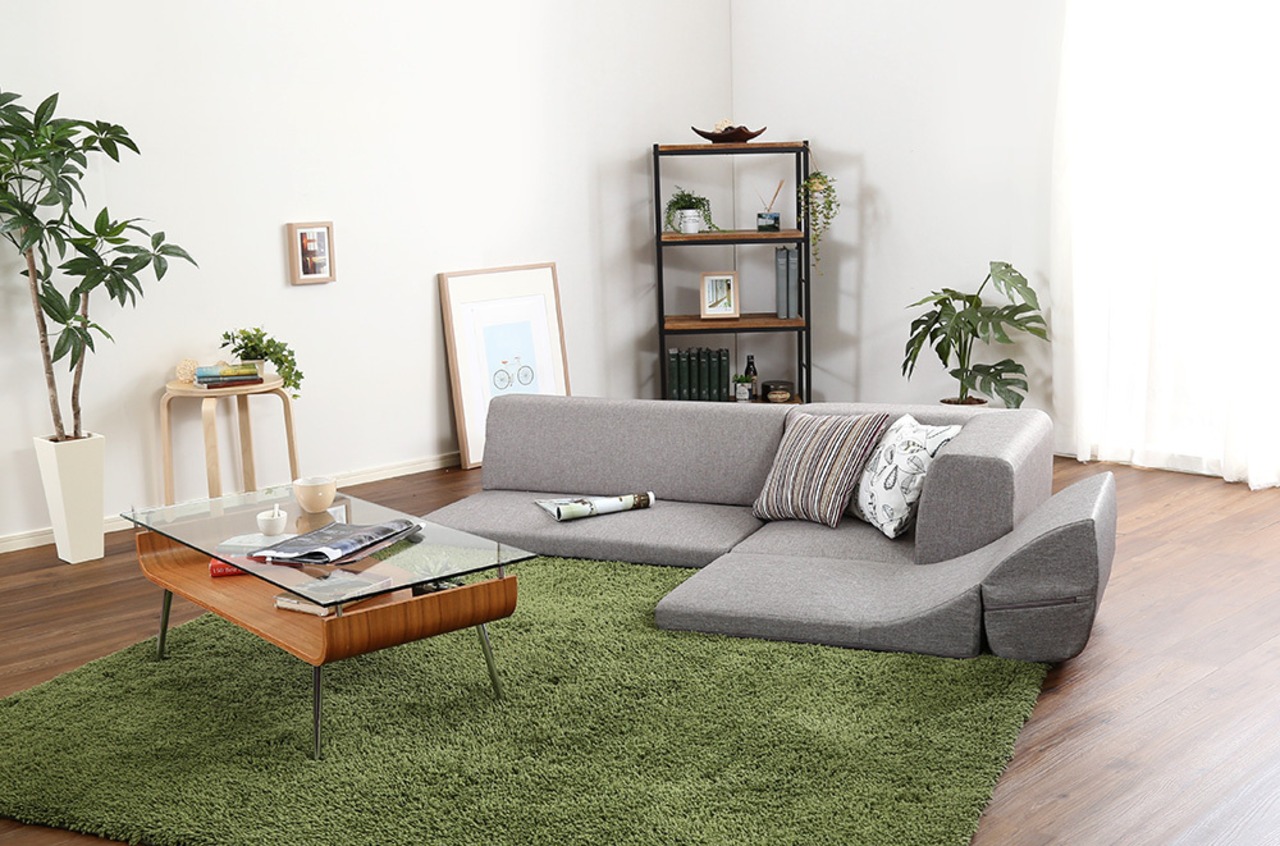 日本製で部屋を広く感じさせる「こたつに住みたくなる」3つのコーナーソファ(グレー)