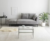 大人のシャビーグレーのカウチソファ。オットマン付き(脚は取り外し可)ライフスタイルを変えられる。