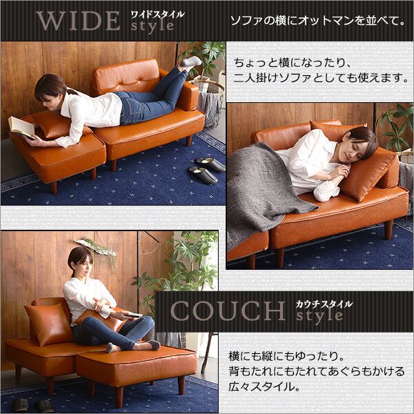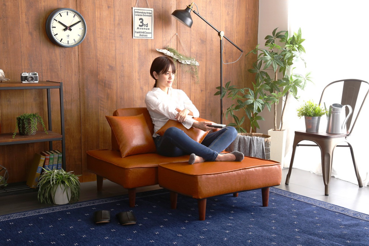 日本製で本格派のヴィンテージカウチソファ。オットマン付きで4つのライフスタイルに自由自在